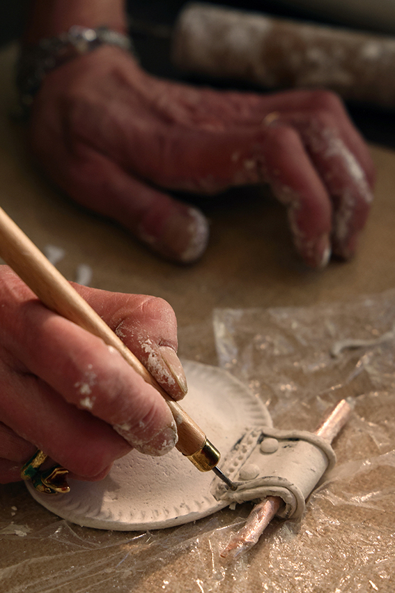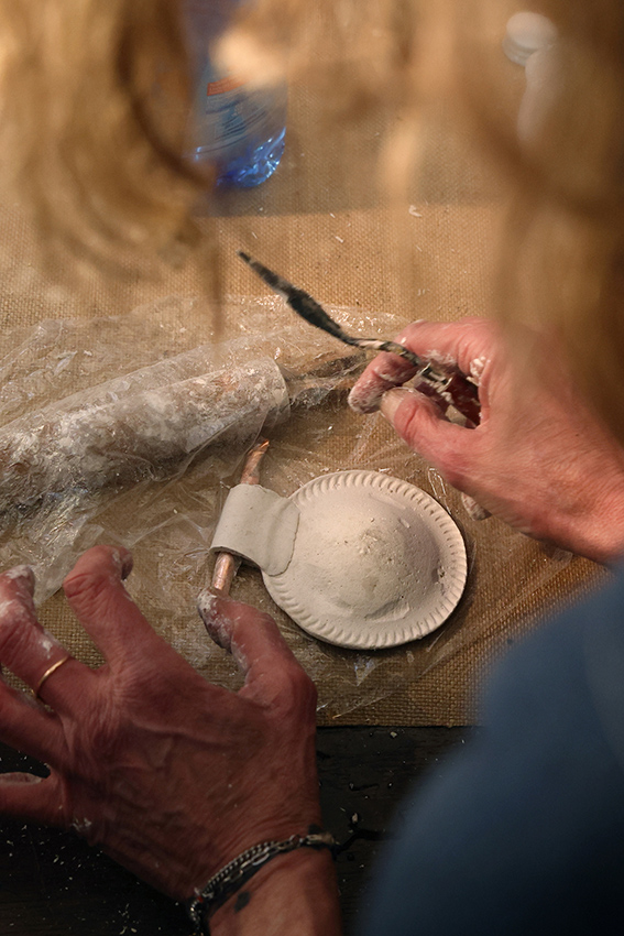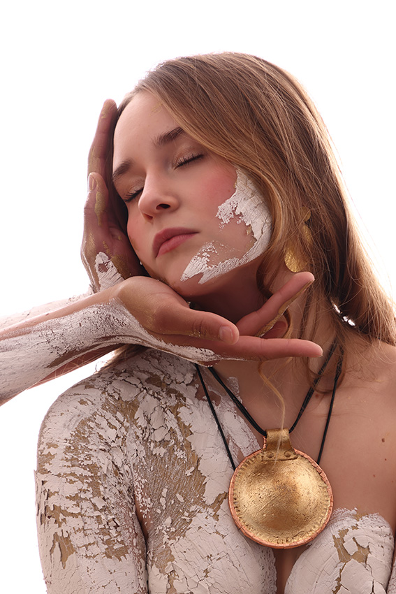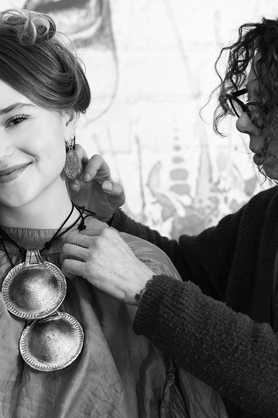 Oggi questo archetipo antico rivive come ponte tra rituale e arte contemporanea. A riportarla in vita è l’artigiana genovese Simona Denini, che ne reinterpreta il significato attraverso una pratica sensibile capace di connettere passato e presente. Realizzata in polpa di cellulosa, materiale organico e biodegradabile di origine vegetale, custodisce al suo interno un nucleo di piccoli elementi che si attivano al movimento, trasformando l’amuleto in una presenza viva e sonora.
